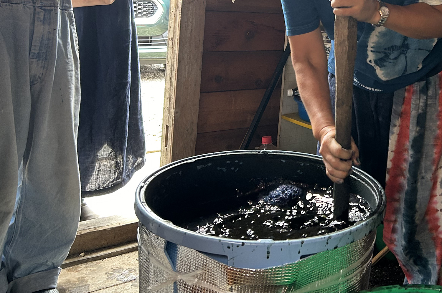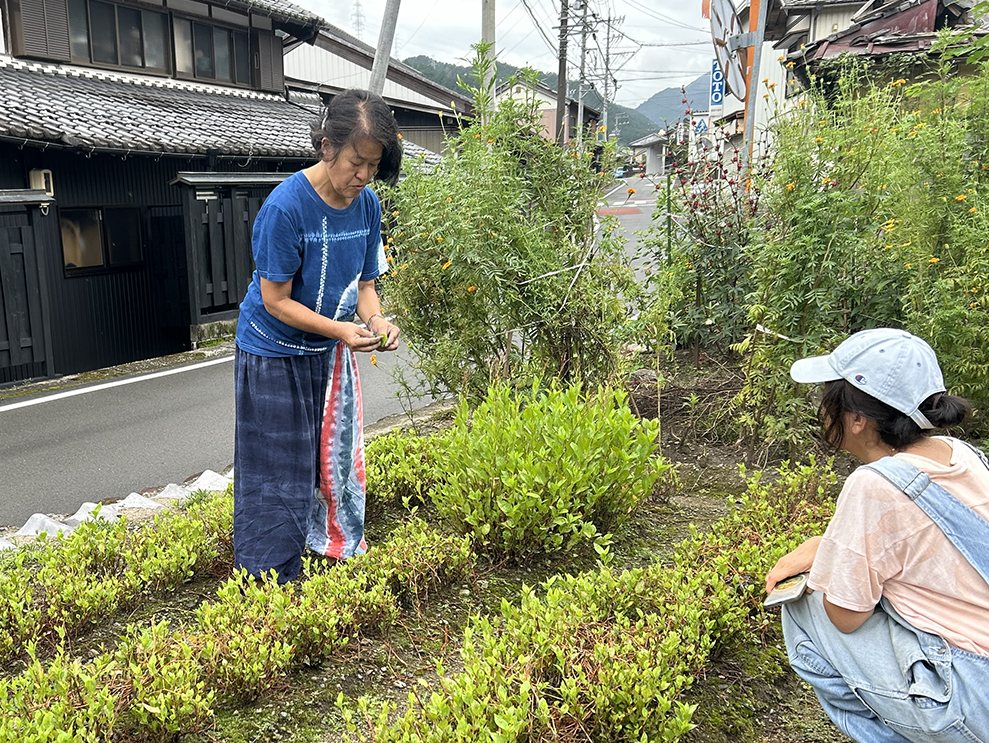 Aコースは藍を種から育てて、生葉染めを体験できます。